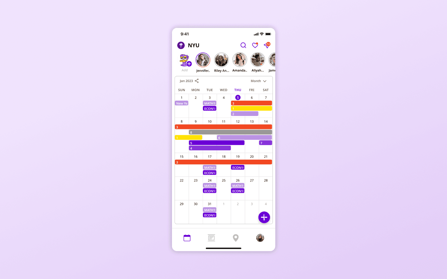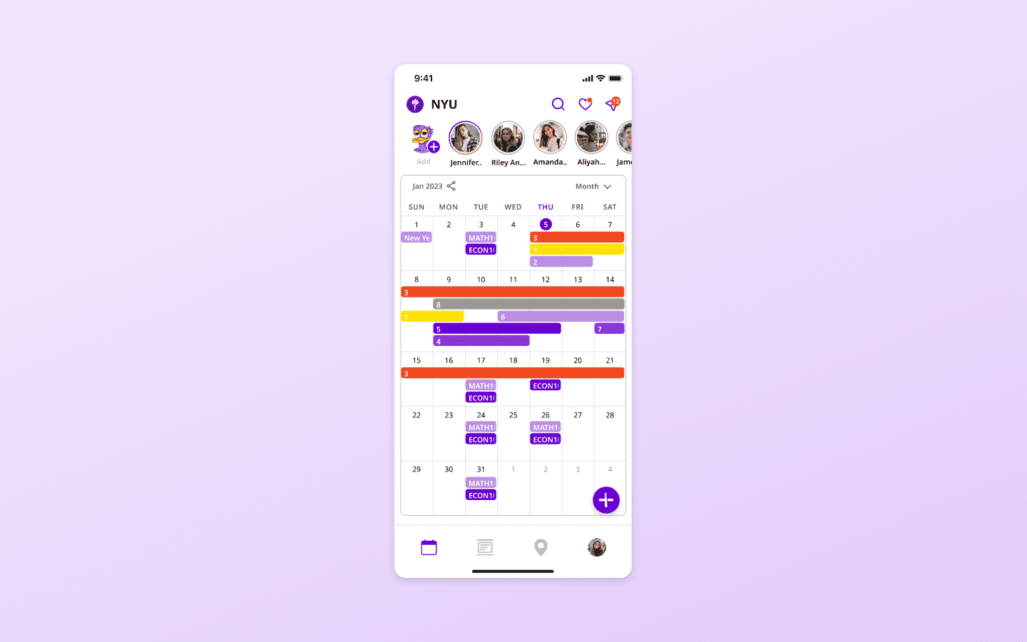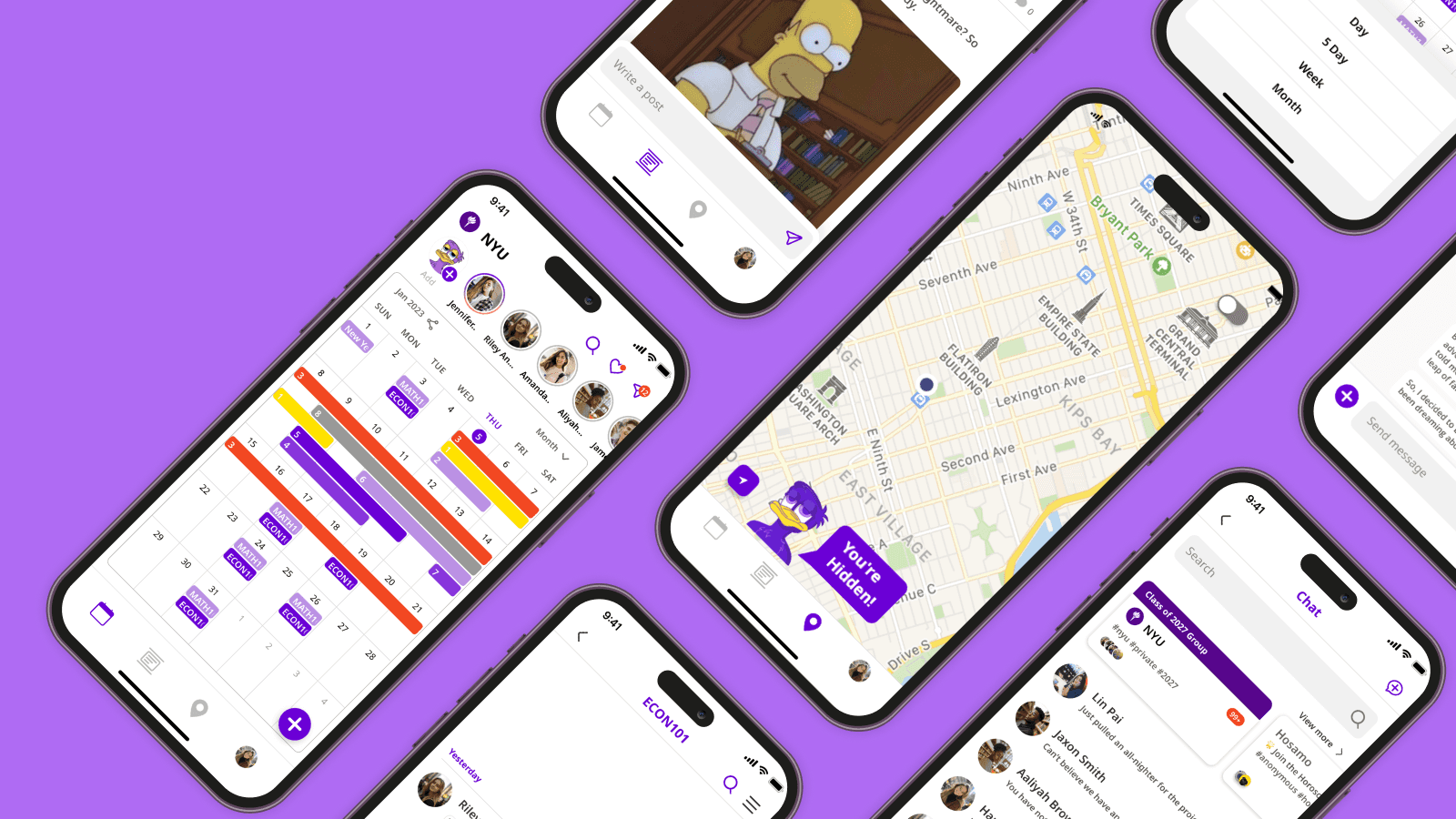 Users can see peers taking the same class, add events, and socialize based on their campus schedule