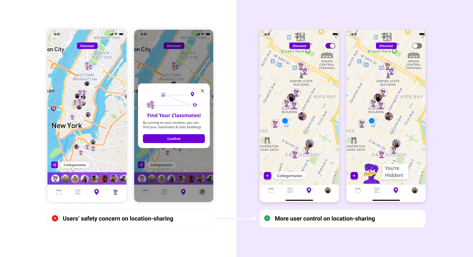 Users can socialize safely by choosing to fully hide their location or go anonymous