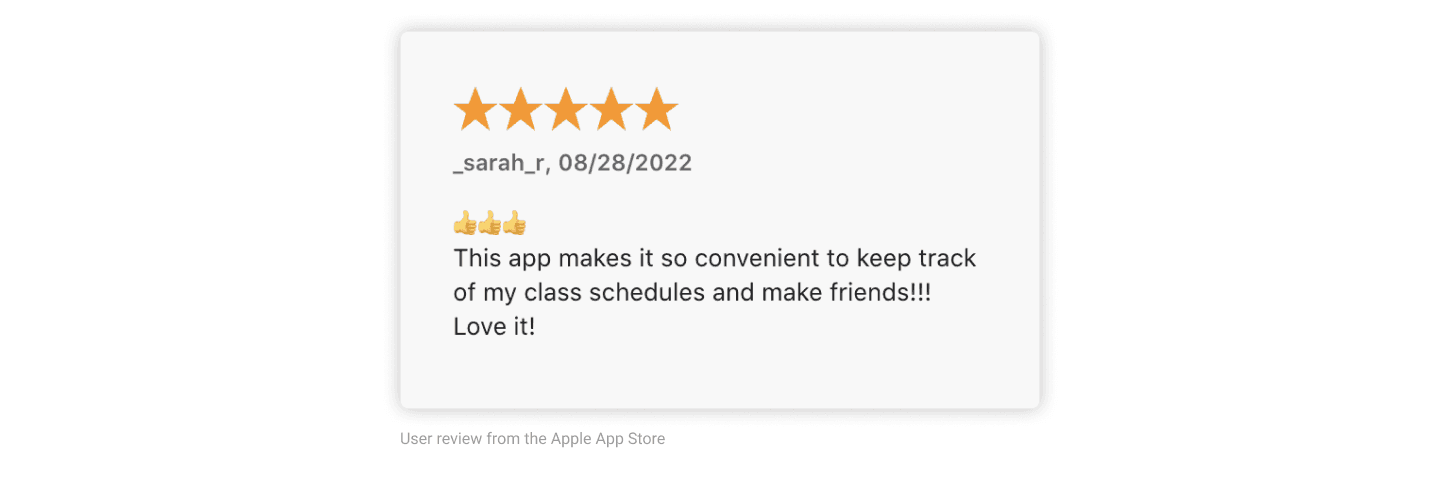 Users can see peers taking the same classes or events with flexible time frames and engage with peers with similar schedules