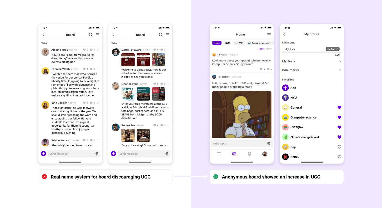 The anonymous board feature enables users to be more open and engaging within the app